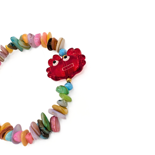Schelpen kralenarmband met rode krab