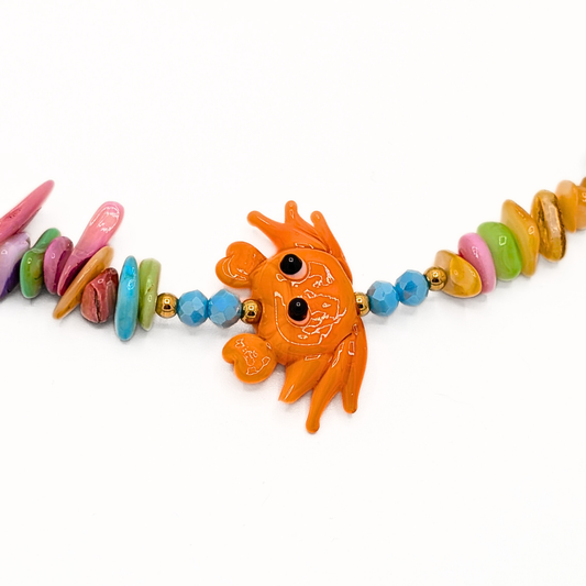 Schelpen kralenarmband met oranje krab