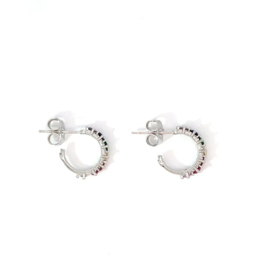 Zilveren kleine oorringetjes met multi color kristallen