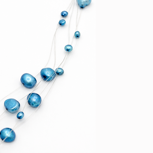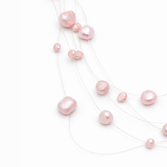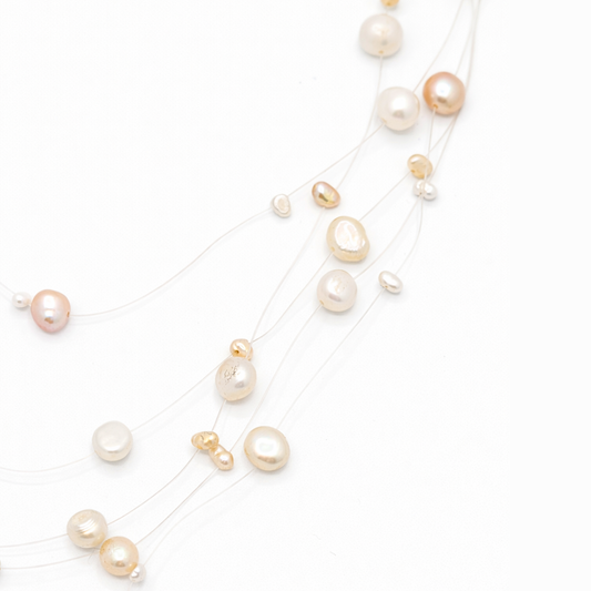 Zwarte kraaltjes ketting met kleine goudkleurige kraaltjes en een grote ovale parel