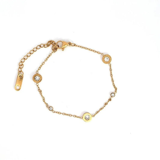Fijne gouden schakelarmband met 3 grote en 2 kleine kristallen