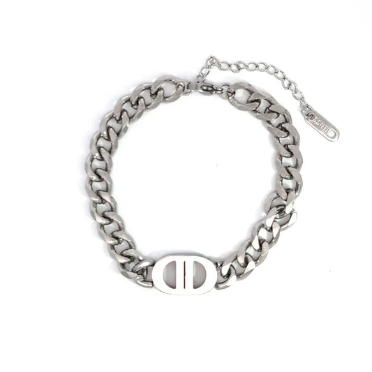 Grove zilveren schakelarmband met stevige rond afgewerkte schakels