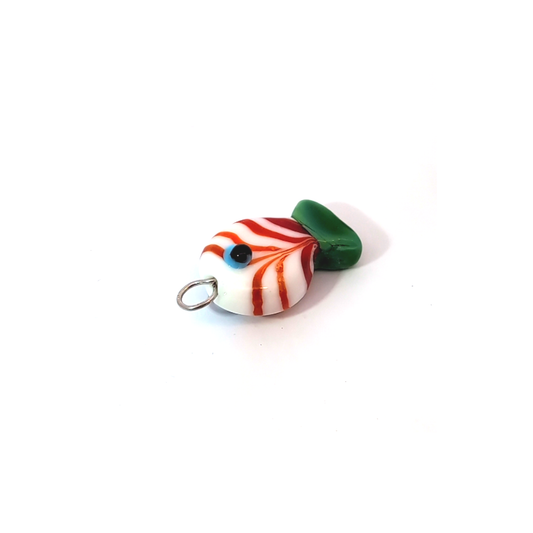 Witte rechthoekige bedel met blauwe sardientjes geschilderd