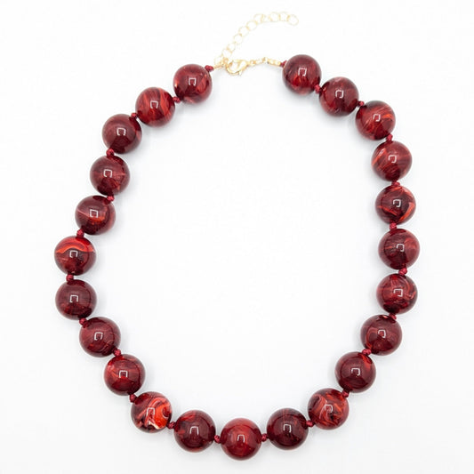 Donker rode gemarmerde grote kralen ketting