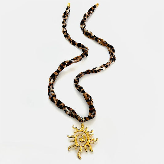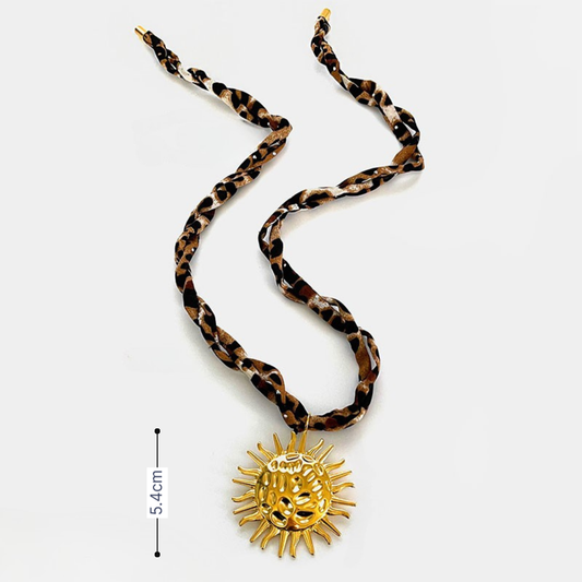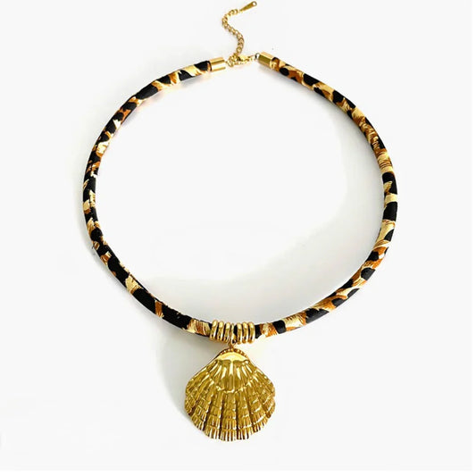 Ketting panterprint stof met gouden statement gedraaide schelp