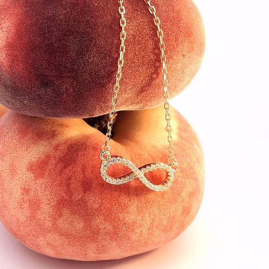 Ketting goudkleurig oneindig hanger afgezet met strass