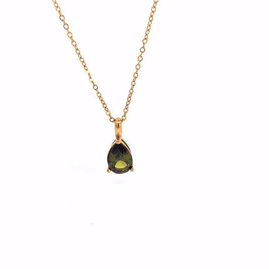 Gouden ketting met donker blauwe kristal druppel vormige bedel