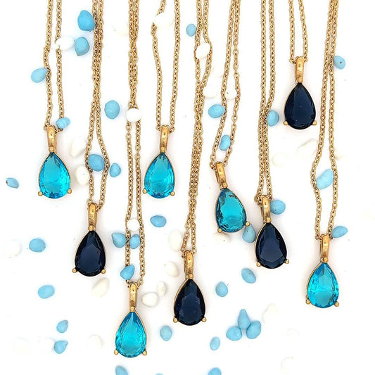 Gouden ketting met blauwe kristal druppel vormige bedel