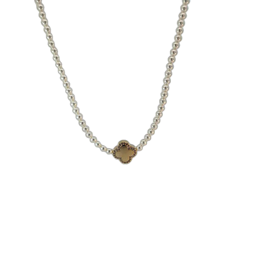 Fijne schakel ketting met balletjes en een parelkraal strik met goudkleurige details