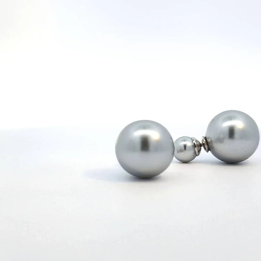 Oorknopjes grote grijze parelmoer bal en kleine parelmoer knop