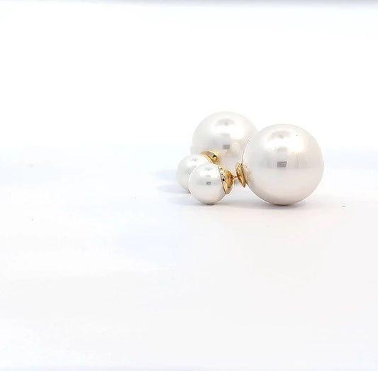 Oorknopjes grote witte parelmoer bal en kleine witte parelmoer bal