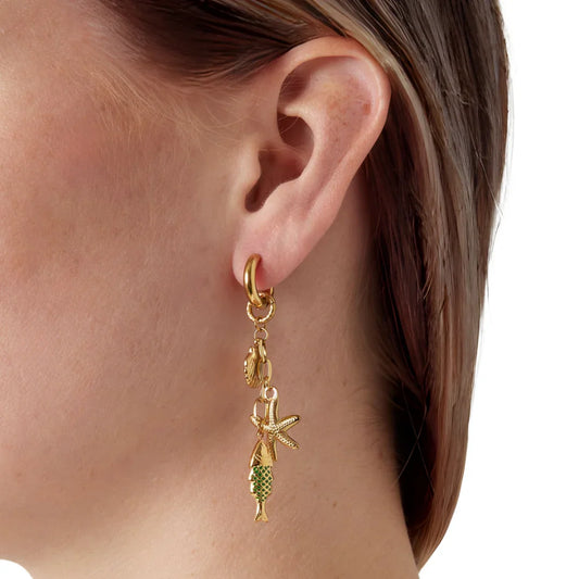 Gouden oorringetjes met oranje vis groen kraaltjes en hartje