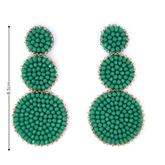 Oorknopjes 3 rondjes met groene kraaltjes goud afgezet