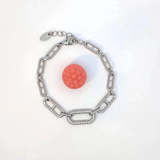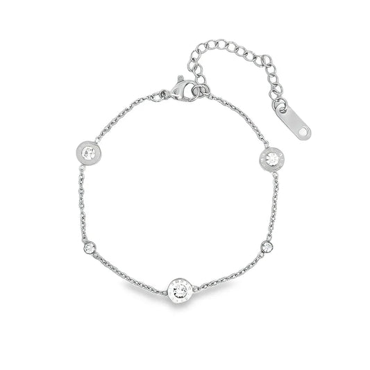 Fijne zilveren schakelarmband met 3 grote en 2 kleine kristallen