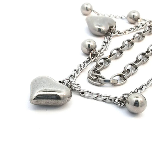 Dubbele zilveren schakel armband met hartjes en balletjes