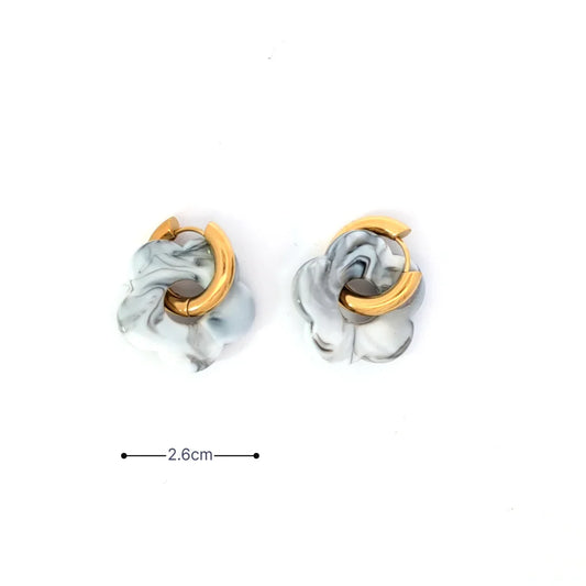 Gouden oorringetje met wit grijze marble bloem