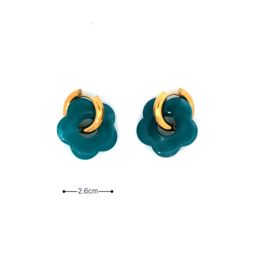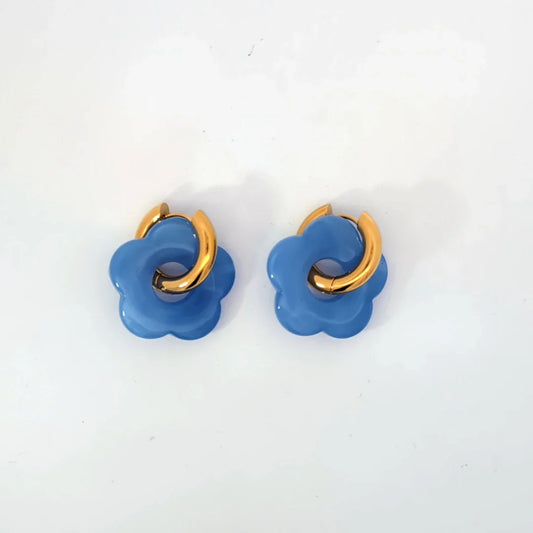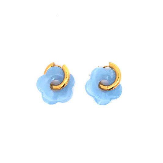 De kleuren zijn zorgvuldig gekozen om goed met elkaar te combineren. Denk aan lichtblauw met perzik, roze met goud of olijfgroen met marmerlook. De bloem bedel vormt steeds het vrolijke middelpunt van je oorbellen en brengt direct een zomers gevoel met zich mee.
