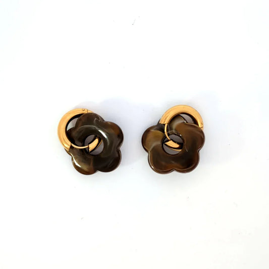 Gouden oorringetje met bruine marble bloem