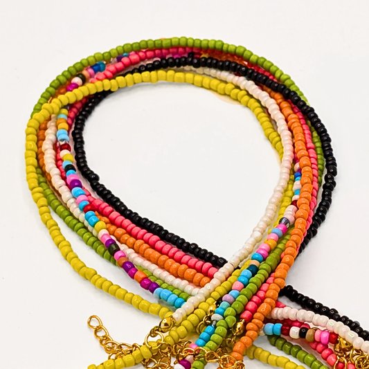 Geel-roze glazen kralenketting met frontsluiting en hart
