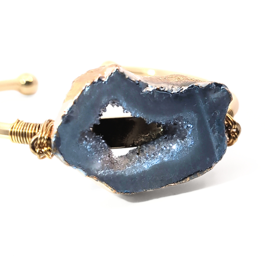 Gouden bangle met donkergrijze agaat edelsteen