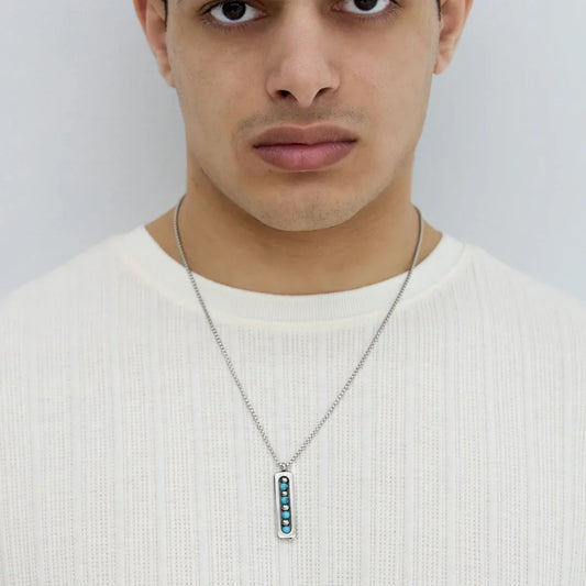 Halsketting heren zilver met natuurstenen druppels in turquoise en off-white