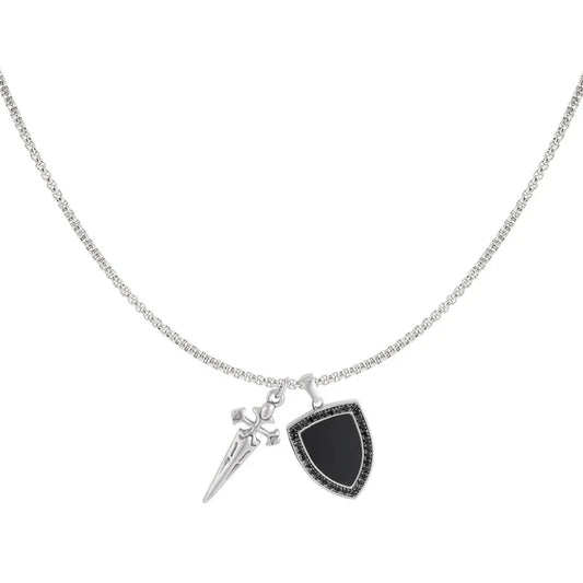 Halsketting met zwaard en schild in zilver en zwart