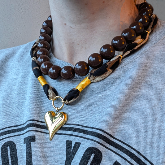 Bruine grote kralenketting