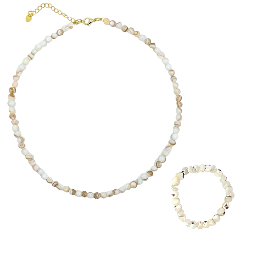 AanbiedingWitte natuursteen set | armband en ketting