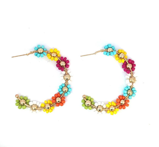 Oorringen met gekleurde bloemetjes van kraaltjes