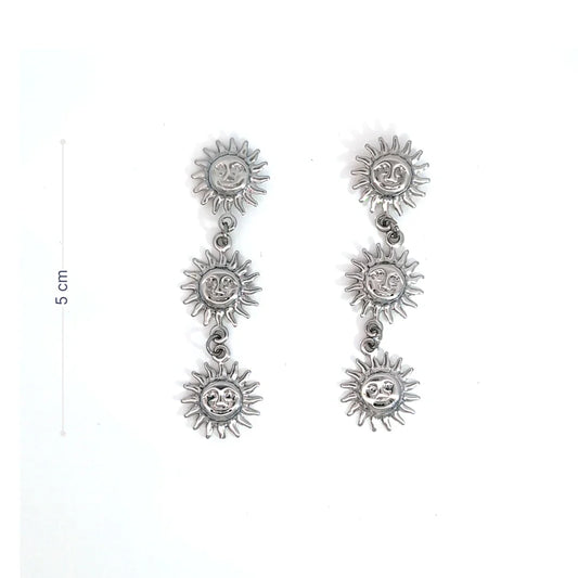 Zilveren oorknopjes met 3 hangende zonnetjes