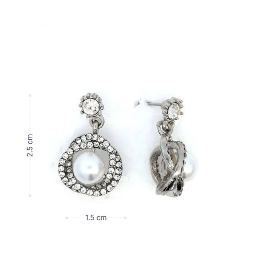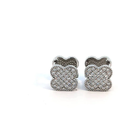 Clover oorknopjes zilver met wit andere kant met kleine witte kristallen