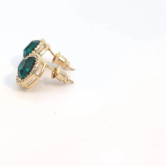 Clover oorknopjes goud met smaragd groen andere zijde kleine witte kristallen