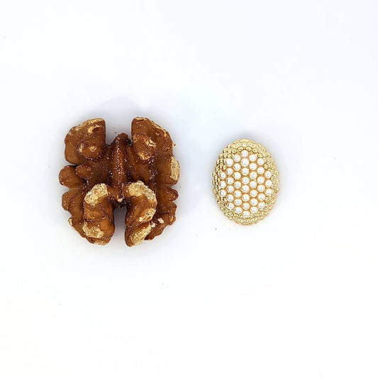 Oorknopjes ovaal met geribbeld goud en pareltjes bedekt