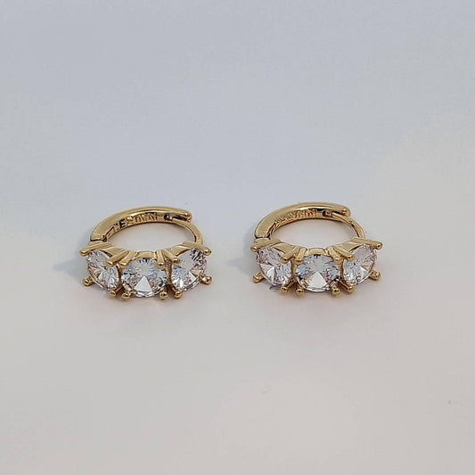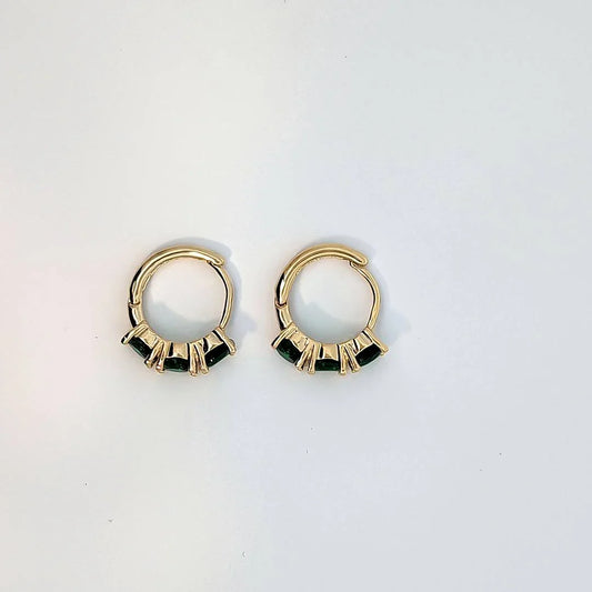 Kleine gouden oorringetje met 3 smaragdgroene kristallen