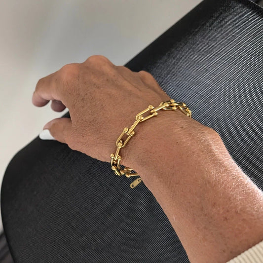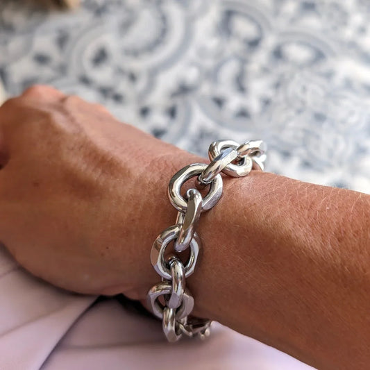 Een armband met schakels is een perfecte basis voor jouw sieradencombinaties. Draag hem solo voor een krachtige, minimalistische uitstraling of combineer met een fijne bangle, kralenarmband of parelarmband voor een speelse en vrouwelijke look.