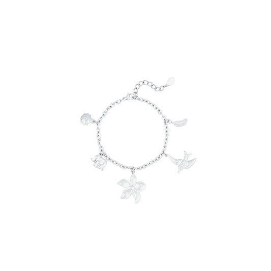 Setje zilveren bedel ketting en armband met lieveheersbeestje olifant bloem vogel blad