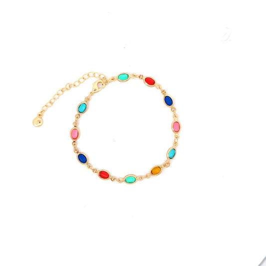 Setje gouden multicolor schakel armband en ketting