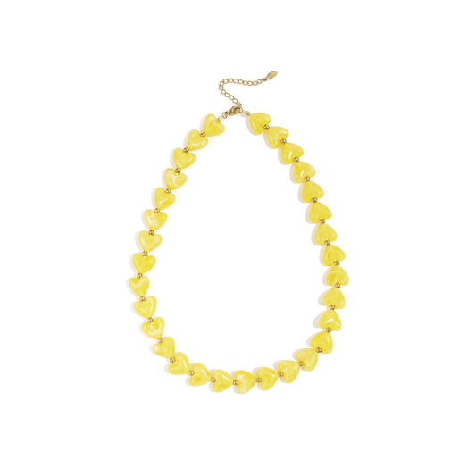 Multi ketting met kleine witte kraaltjes en groot zilveren hart
