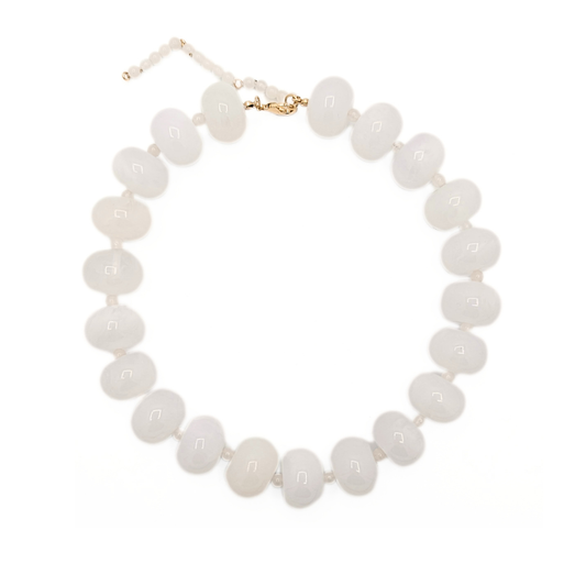 - minimalistische witte ketting, bijvoorbeeld kleine kraaltjes of stukjes schelp.