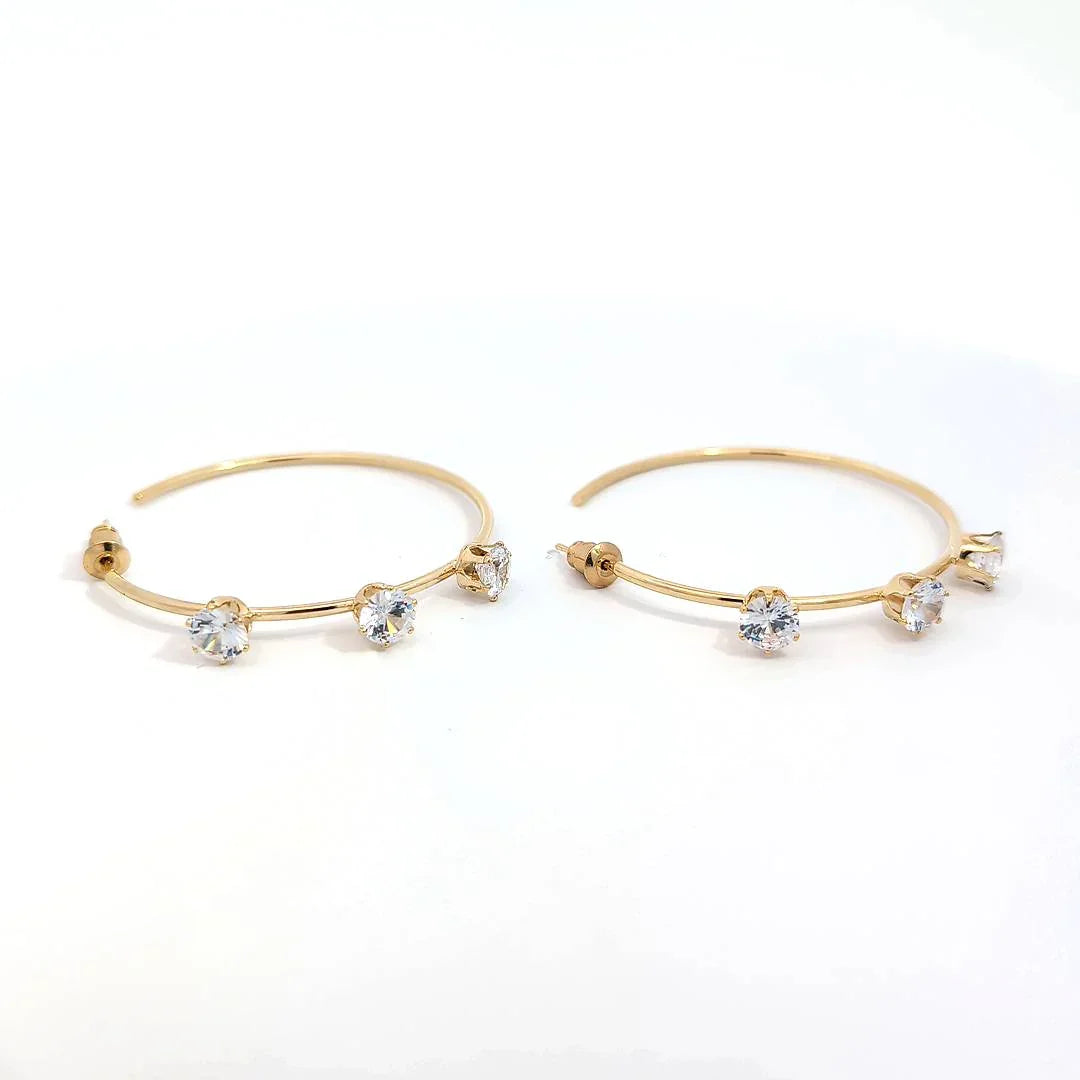 Deze verfijnde oorringen zijn het perfecte voorbeeld van less is more. Vervaardigd uit glanzend goud en afgewerkt met sprankelende strasssteentjes, stralen ze een elegante eenvoud uit die bij elke look past. Ze vangen het licht op een subtiele manier en geven je net die extra sparkle – zonder te overdrijven.