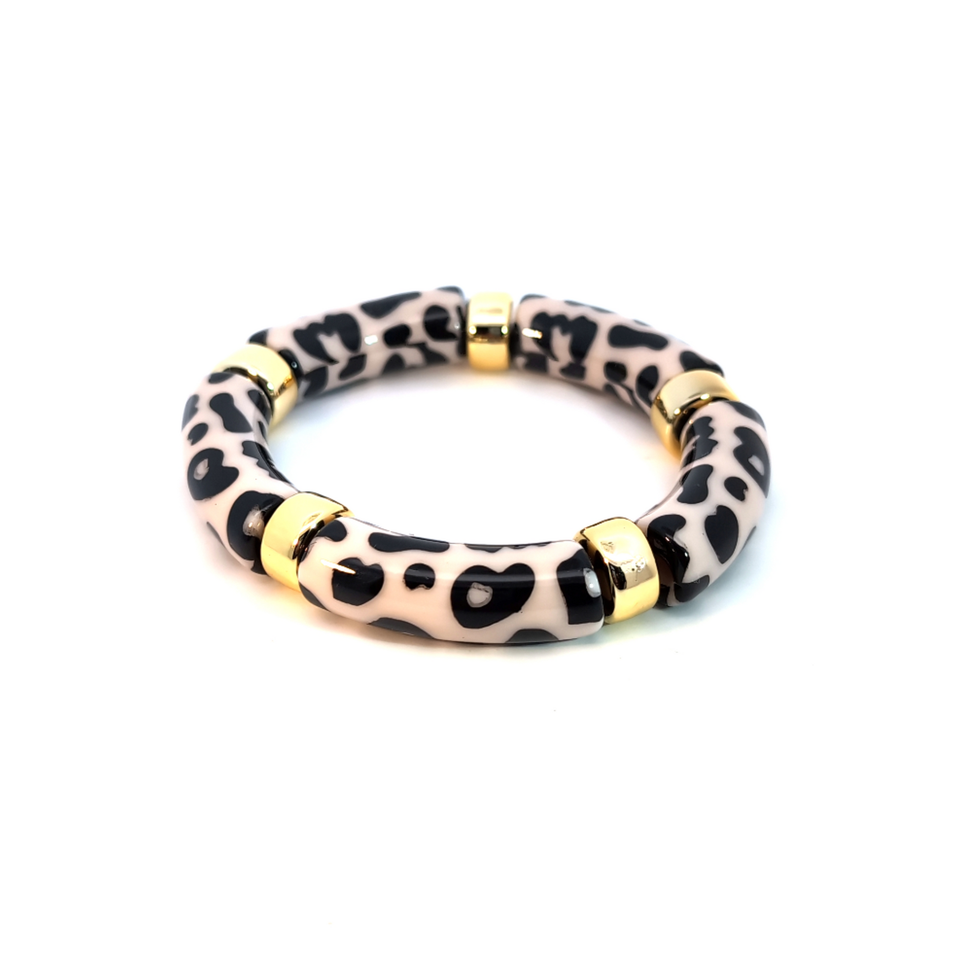 Roze panterprint gouden gemarmerde tube Parabaya armband
